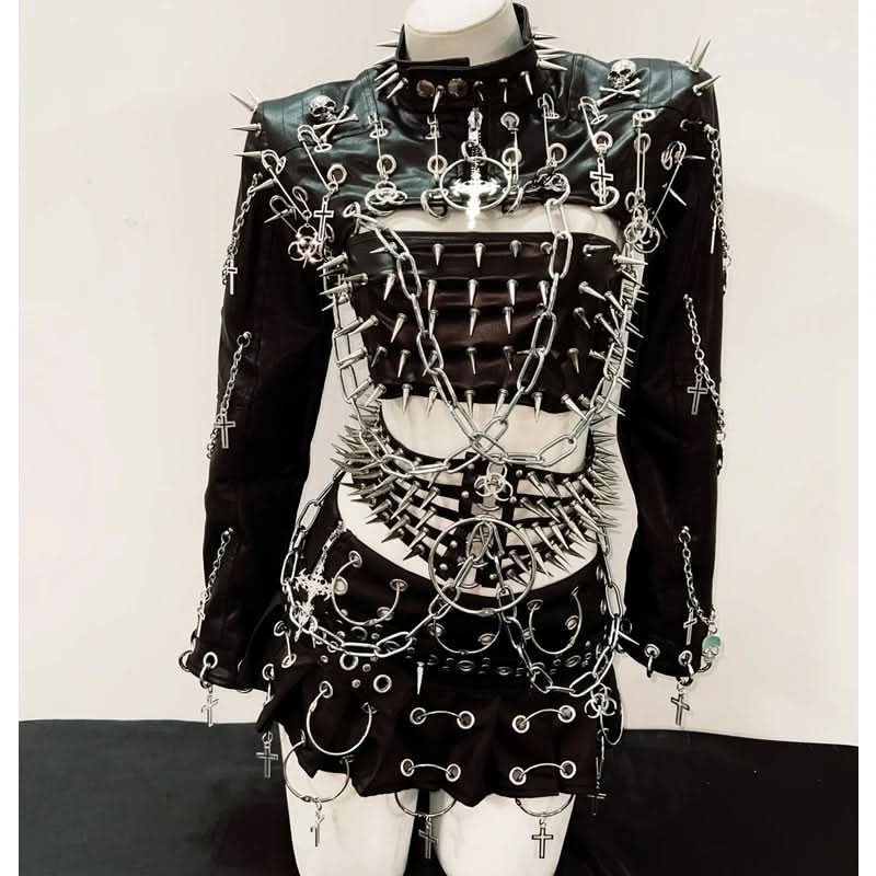 Add to wishlist Unleash Your Inner Vixen: Extreme Spiked & Chained Gothic Punk PU Leather Set - Perfect for Halloween & Fall Festivals