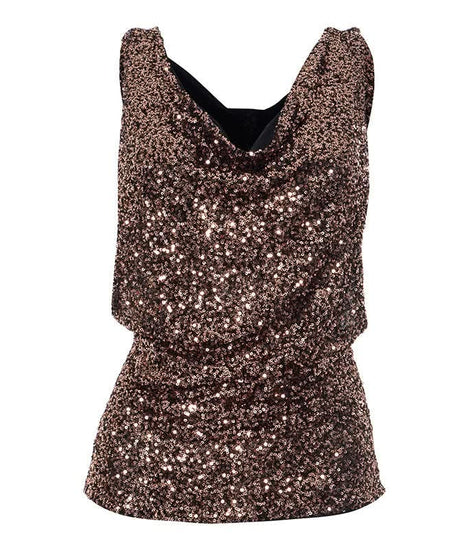 Shine Bright This Season: The Ultimate Rose Gold Sequin Cowl Neck Blouse